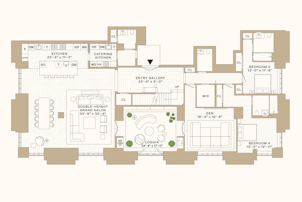 Crowning this Tribeca landmark, two rarefied penthouses embody a century of artistry, intellect, and architectural mastery. Reimagined by Paris Forino, these residences honor Ralph Walker’s vision, blending historic grandeur with contemporary ease. Expansive volumes, soaring ceilings, and light-filled loggias open to sweeping water and city views. Five bedrooms, sculpted stone baths, and dual kitchens balance artistry with everyday living. Every curated detail celebrates architecture, art, and the quiet power of timeless design, inviting each resident to become the steward of an architectural legacy.